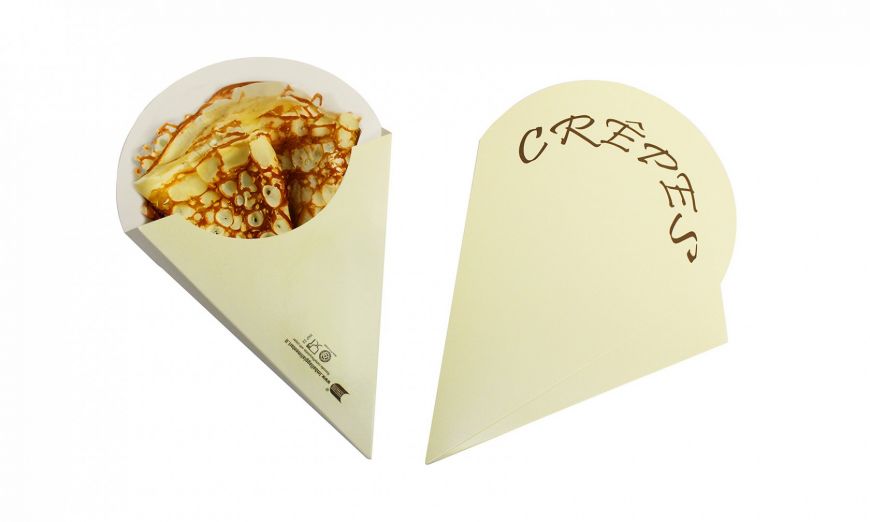 "Crepes holder" is made with kraft natural brown paper white paper coated. This product is made with pure cellulose and not from recycled cellulose, it can be recycled in the paper bin and it respects all the regulations concerning food contact.