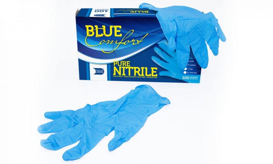 "Blue Comfort Nitrile gloves" powder free is a product made in nitrile that offers a good level of comfort and adaptability thanks to its elasticity, it is highly resistant ad it reduce the risk of punctures. Available in 4 different sizes (S-M-L-XL).