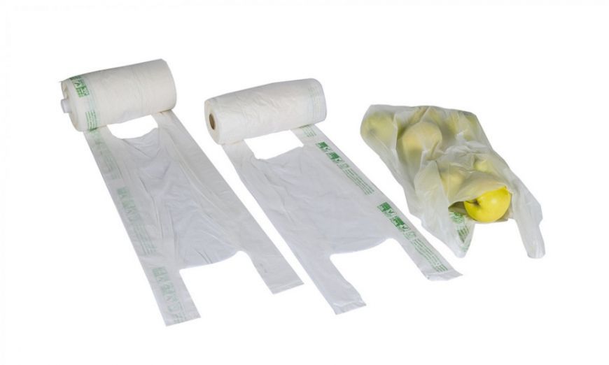 T-shirt bags on roll 22+12x50 12my bio-eco