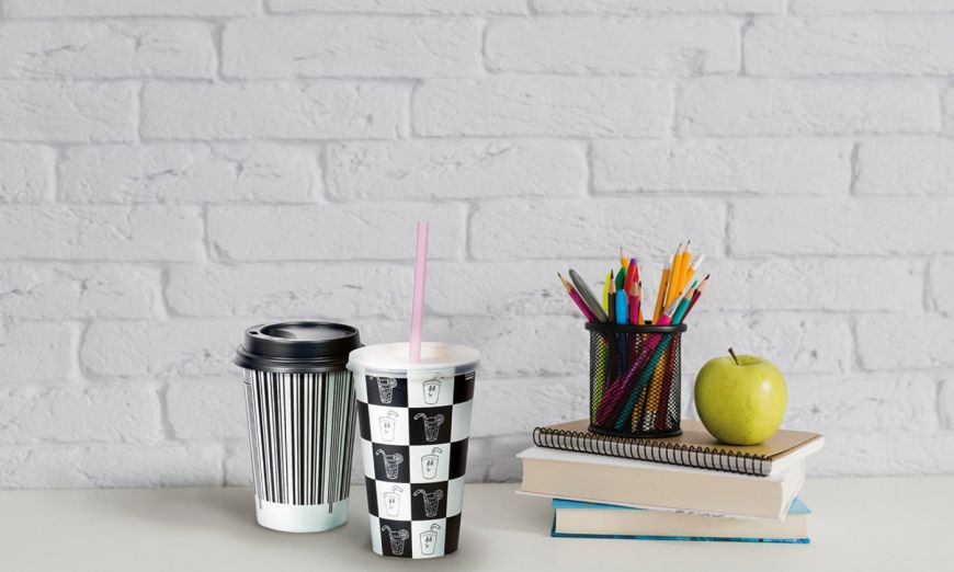 "Bicchieri bibita" è la linea di bicchieri in cartoncino accoppiati in PE idonei per l'asporto di bevande fredde come ad esempio granite, frappè e milkshakes. Tale prodotto è disponibile in varie fantasie ed ha un contenuto di 470 cc, può essere riciclato nella carta e rispetta tutti gli standards previsti in materia di food contact.