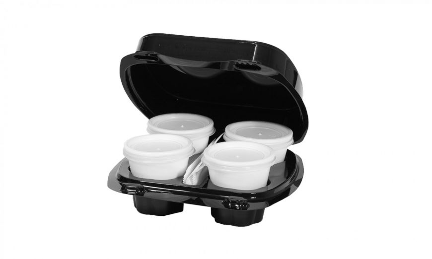 “Kappucciobox 4 bicchieri” in PET facilita il trasporto di più bicchieri riducendo così le probabilità che le bevande contenute all’interno possano rovesciarsi, grazie al suo coperchio contribuisce a mantenere la bevanda calda durante il trasporto. Questo prodotto permette il trasporto di più bicchieri con una sola mano così da avere sempre l’altra libera pronta all’uso.