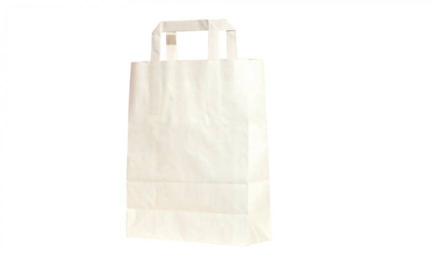 "Borsa carta bianca" 26+14x40 80gr è un prodotto in carta bianca, con manico piattina. Tale prodotto è utile per il trasporto di prodotti e riutilizzabile dal consumatore. Ottima resistenza meccanica e materie prime di alta qualità.