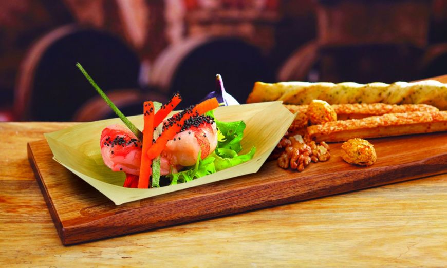 "Barchetta palma" mm 115x70 è la linea di articoli realizzata in palma, può essere usata per aperitivi, happy hours, spuntini veloci; rispetta tutti gli standards previsti in materia di food contact.