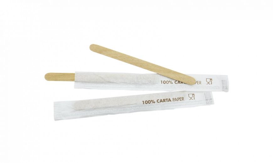 "Palette incartate in legno" è la linea di palette ideali da usare per caffè e cappuccini, in legno di betulla naturale. Tale prodotto è incartato singolarmente per essere poi pronto all'uso per il consumatore ed ha una lunghezza di 11 cm.